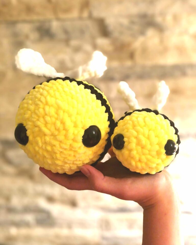 Ručně háčkovaná včelka z akrylové příze, plastová očička.