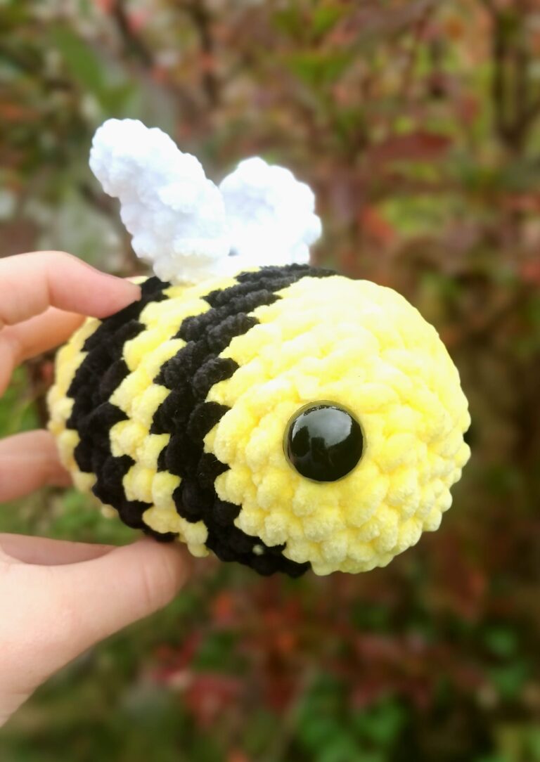 Ručně háčkovaná včelka z akrylové příze, plastová očička.