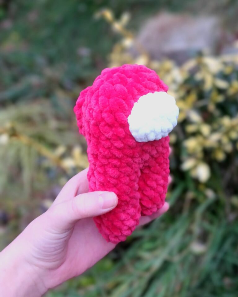 Ručně háčkovaný Amongas z akrylové příze, plastová očička.