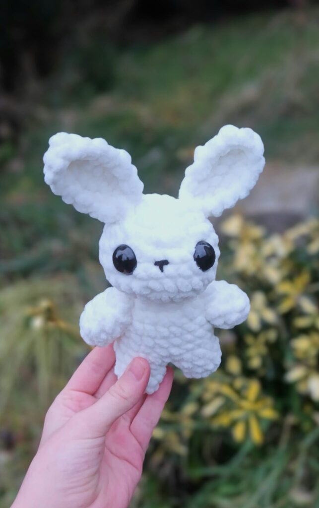 Ručně háčkovaný zajíček z akrylové příze, plastová očička.
